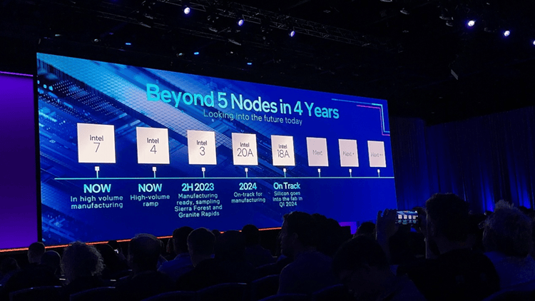 大会上,基辛格暗示,英特尔“4年5个制程节点”打算成功,Intel 7曾经实现大规模量产,Intel 4曾经出产预备停当,Intel 3也正在按打算推进中,方针是2023年岁尾。
